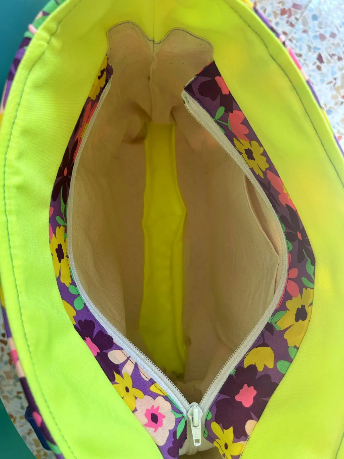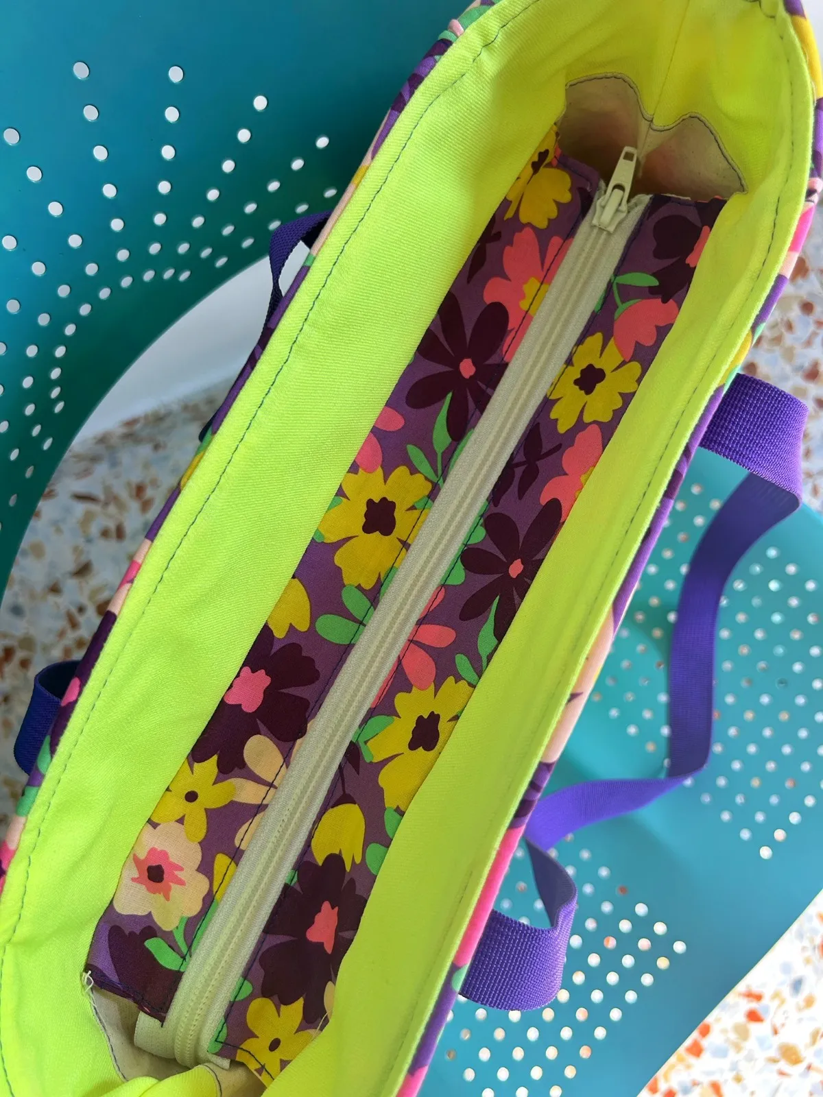 Bolso tote Flower Power: una explosión de color y funcionalidad. Confeccionado en amarillo flúor y un estampado floral, cuenta con cuatro bolsillos exteriores, un bolsillo interior, cierre de cremallera y asa extraíble y ajustable. El accesorio perfecto para tu día a día, con el sello único de la marca.