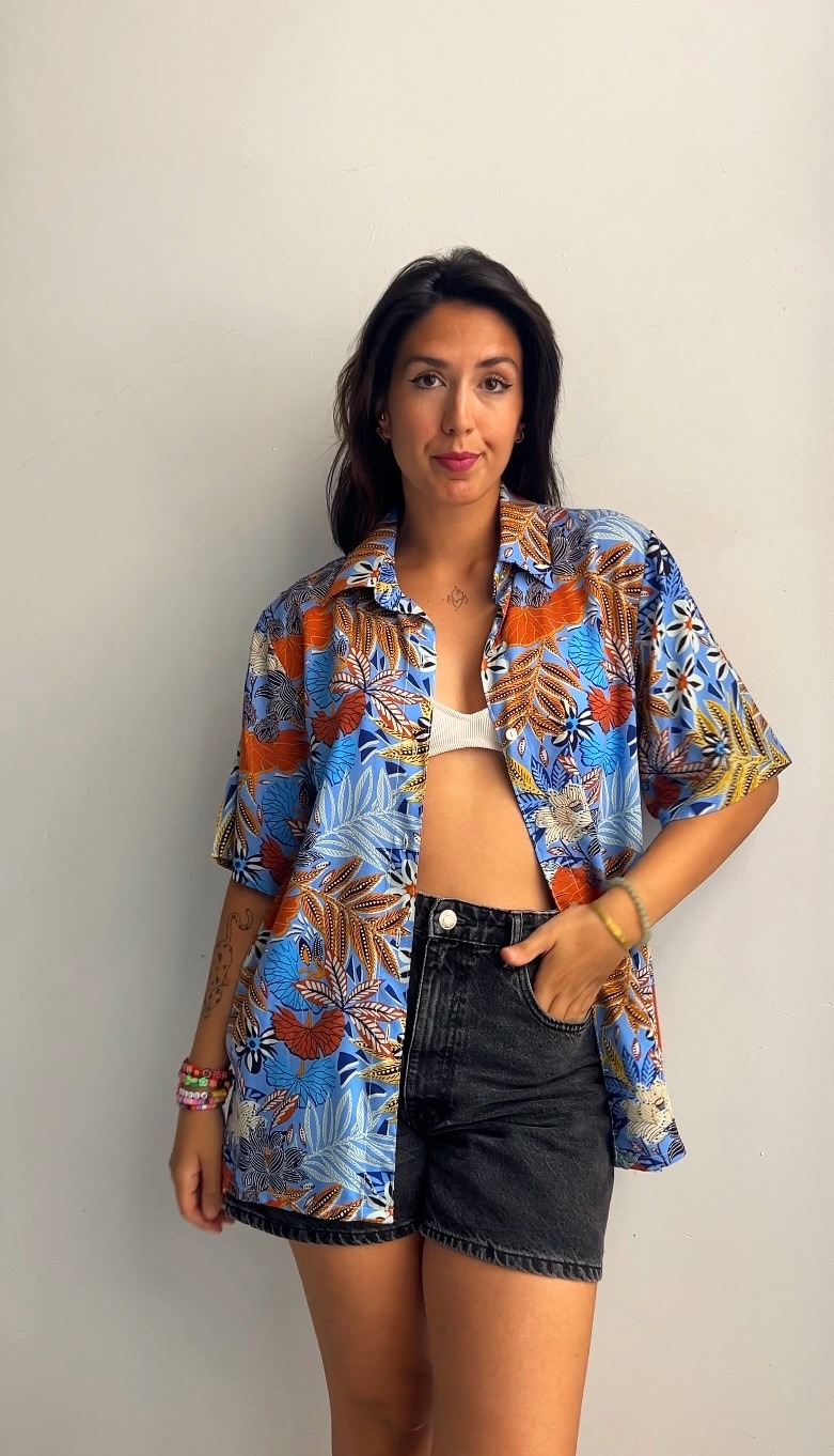 Su corte holgado y unisex la convierte en una prenda versátil y cómoda, perfecta para combinar con jeans, faldas o pantalones cortos. Es ideal para cualquier ocasión, ya sea un festival de música, una tarde de terraceo o simplemente para darle un toque de color a tus días. La camisa Tropical Vibe es la prueba de que la moda puede ser atrevida, divertida y auténtica, sin perder la comodidad.